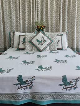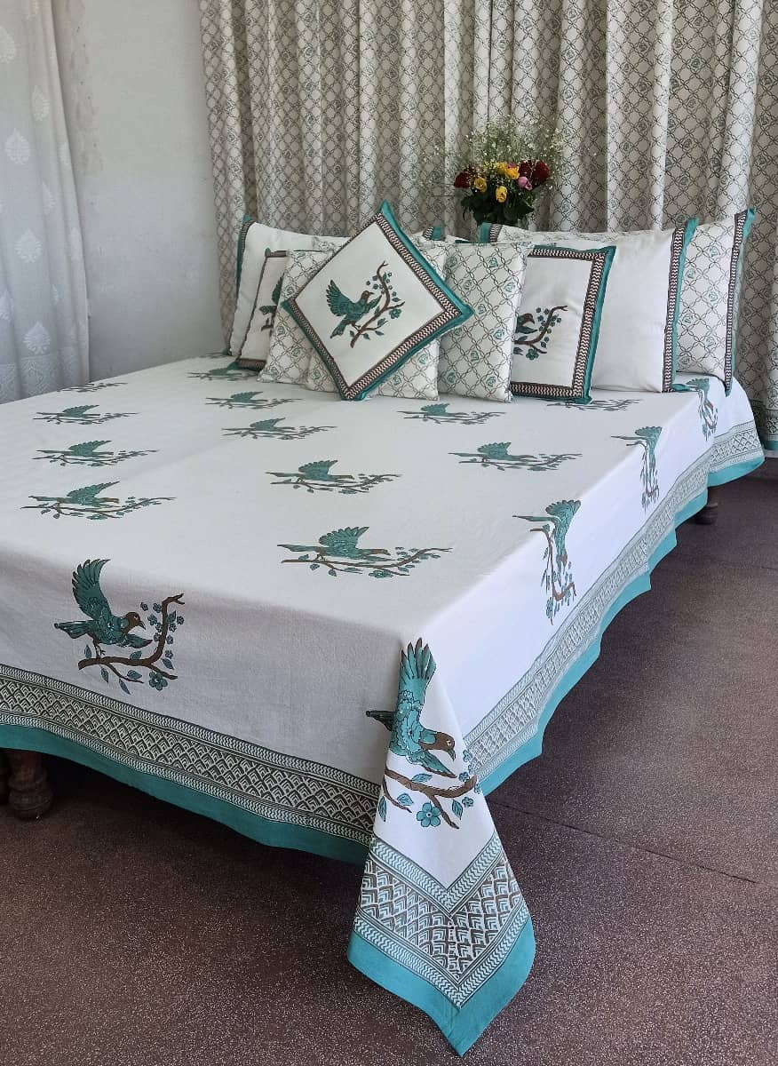 Cotton is a natural durable fabric that can generally be machine washed with no ill effects. Hand printed using wood blocks, machine wash warm, normal cycle, use mild soap, avoid detergents, do not use bleach or fabric whitener, hang to dry in shade.