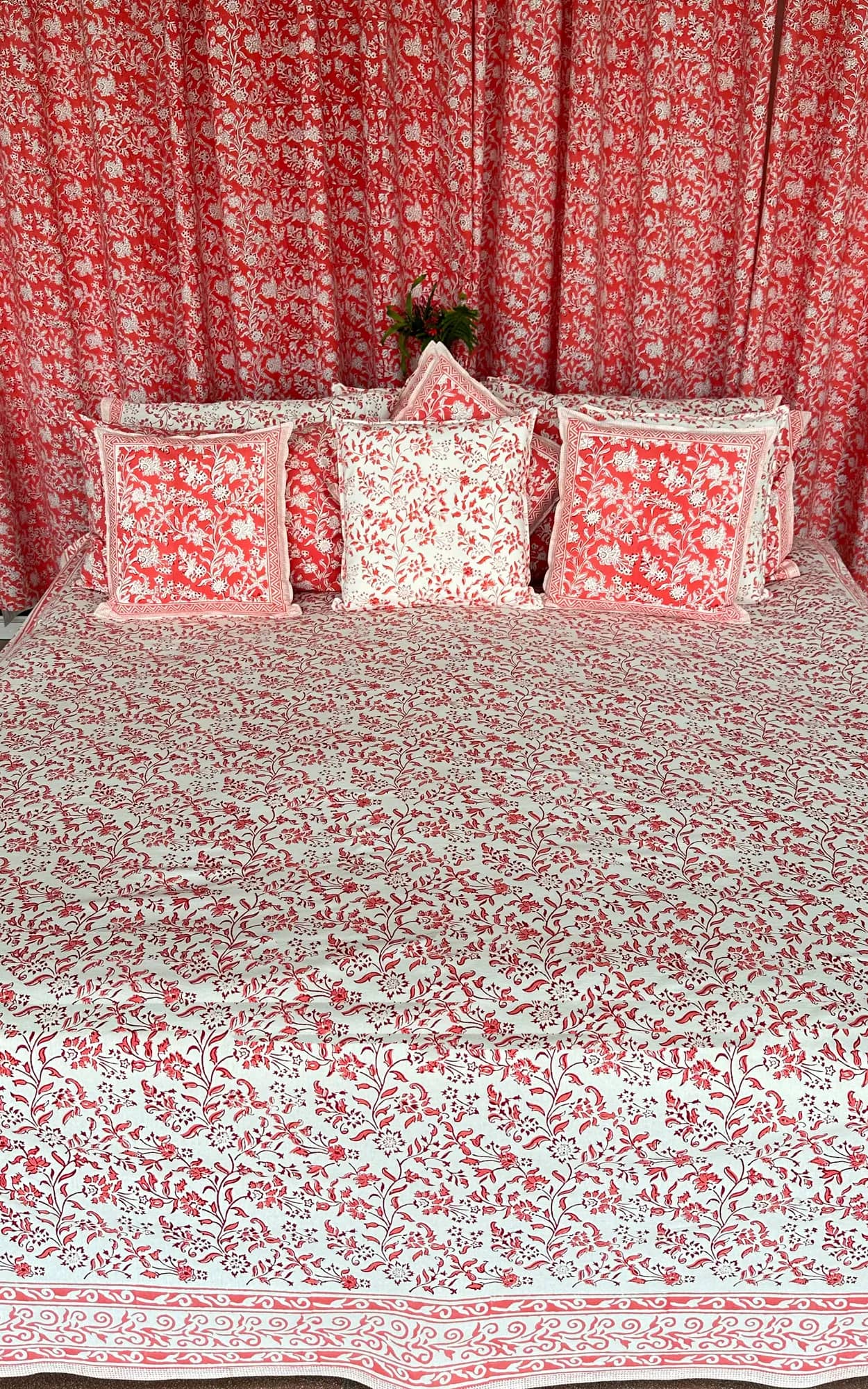 Care Instructions: Cotton is a natural durable fabric that can generally be machine washed with no ill effects. Hand printed using wood blocks, machine wash warm, normal cycle, use mild soap, avoid detergents, do not use bleach or fabric whitener, hang to dry in shade.
