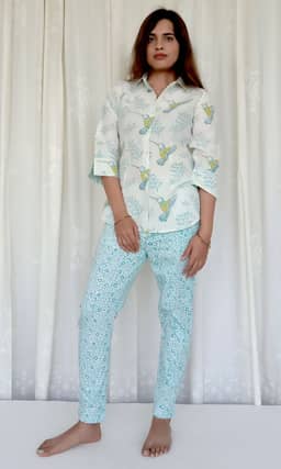 Hand block printed cotton linen.