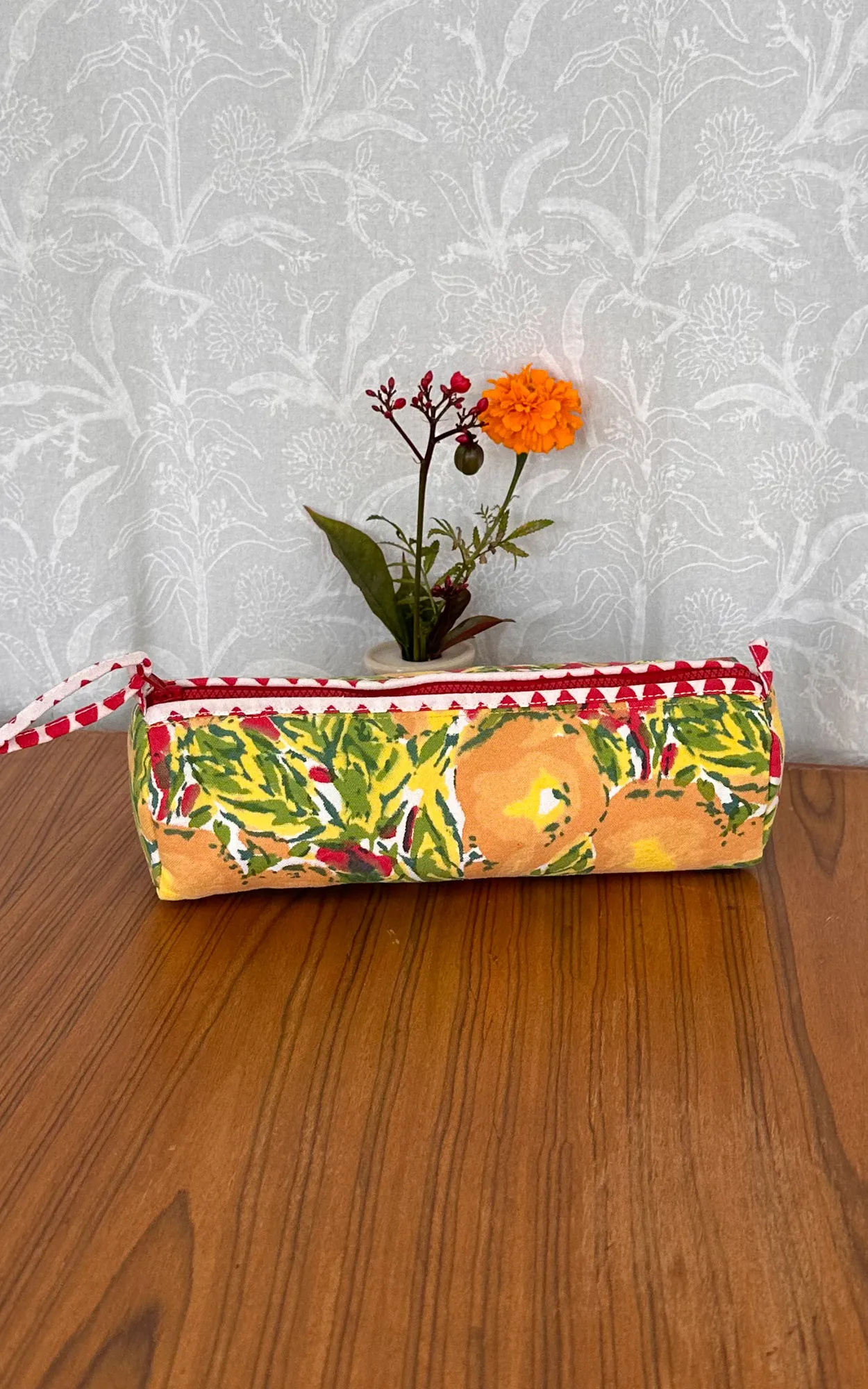 Care Instructions:  Cotton is a natural durable fabric that can generally be machine washed with no ill effects. Hand printed using wood blocks, machine wash warm, normal cycle, use mild soap, avoid detergents, do not use bleach or fabric whitener, hang to dry in shade.