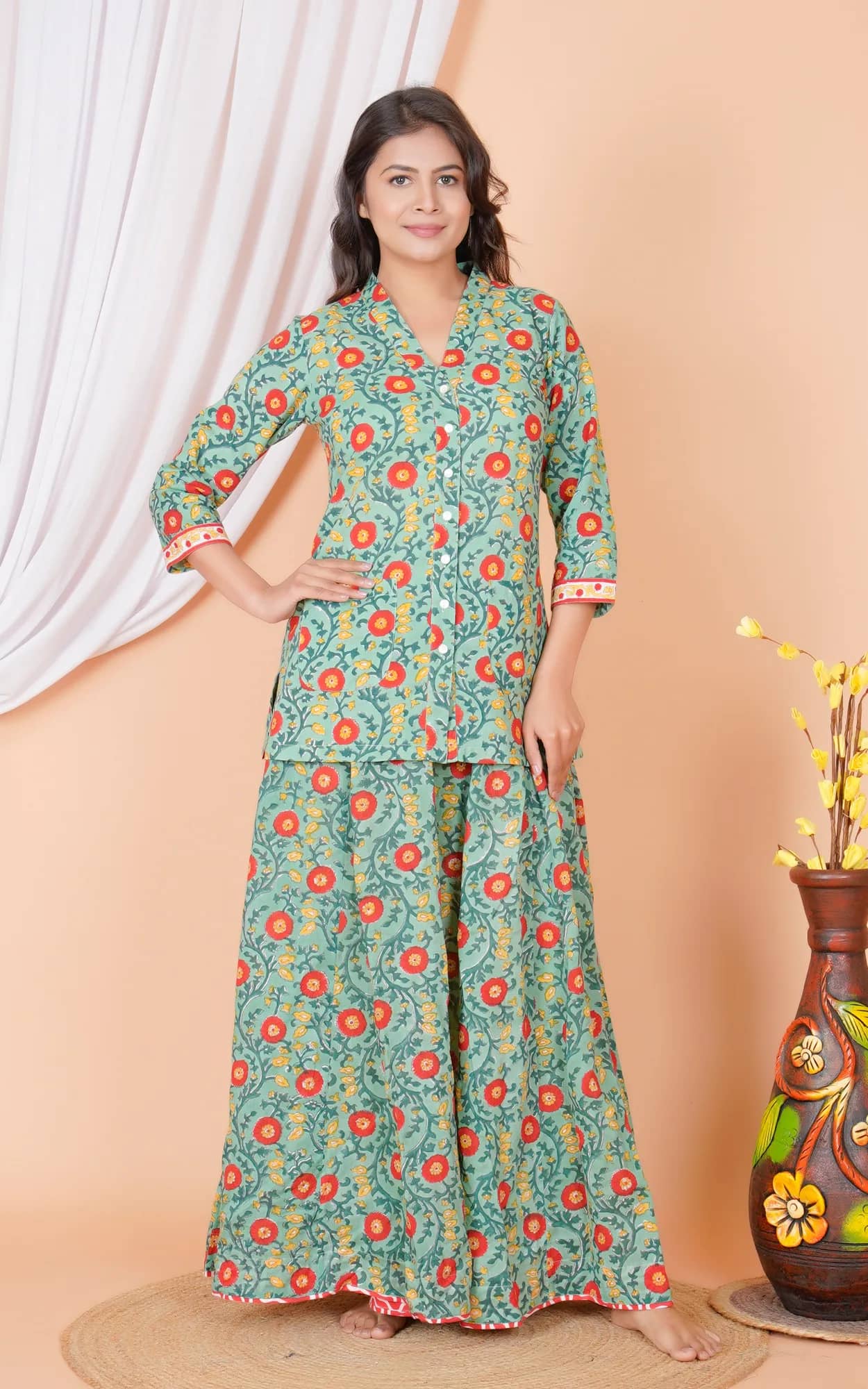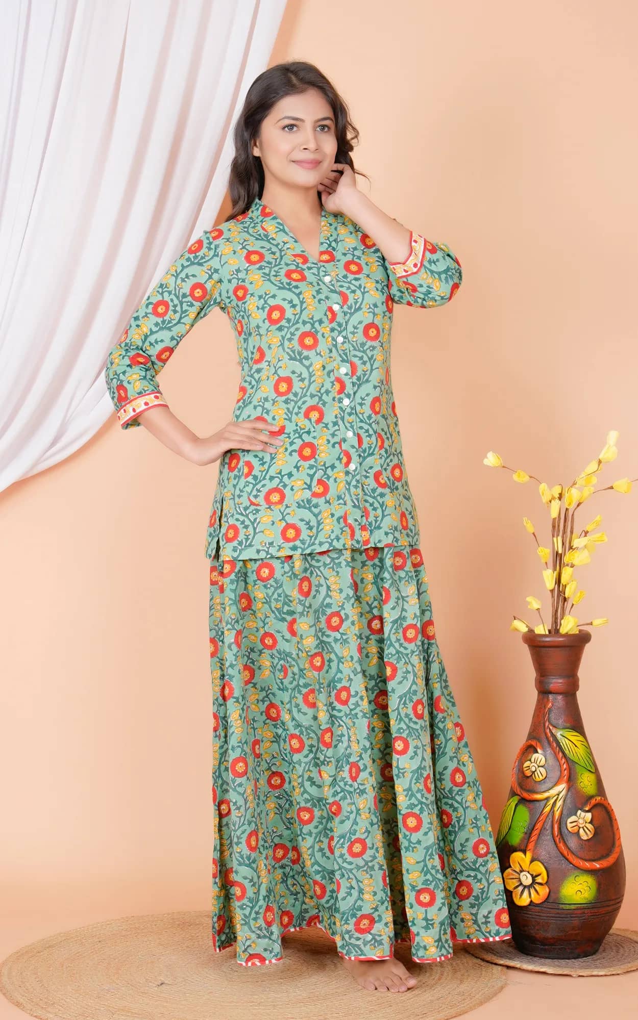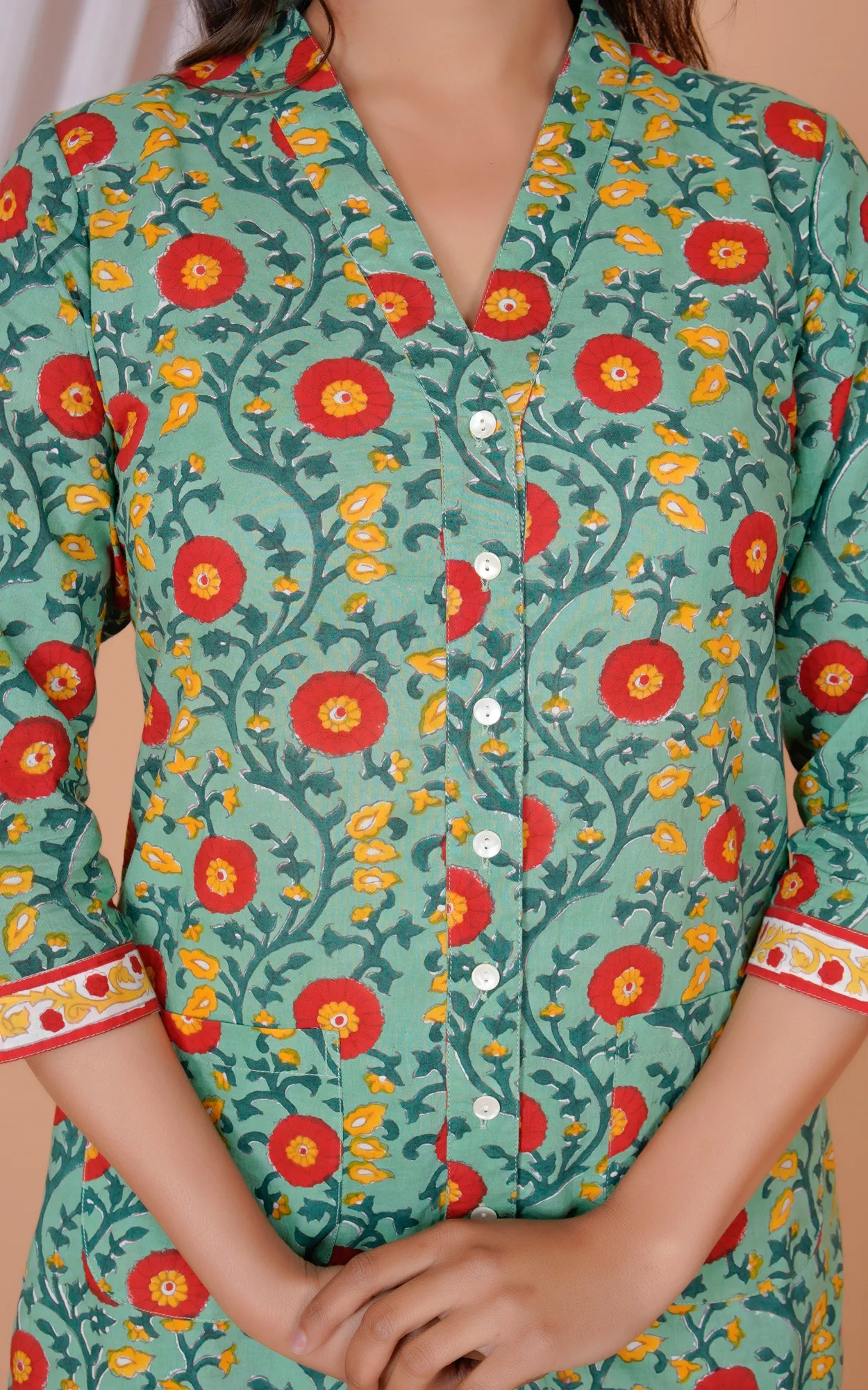100 % Cotton hand block printed.