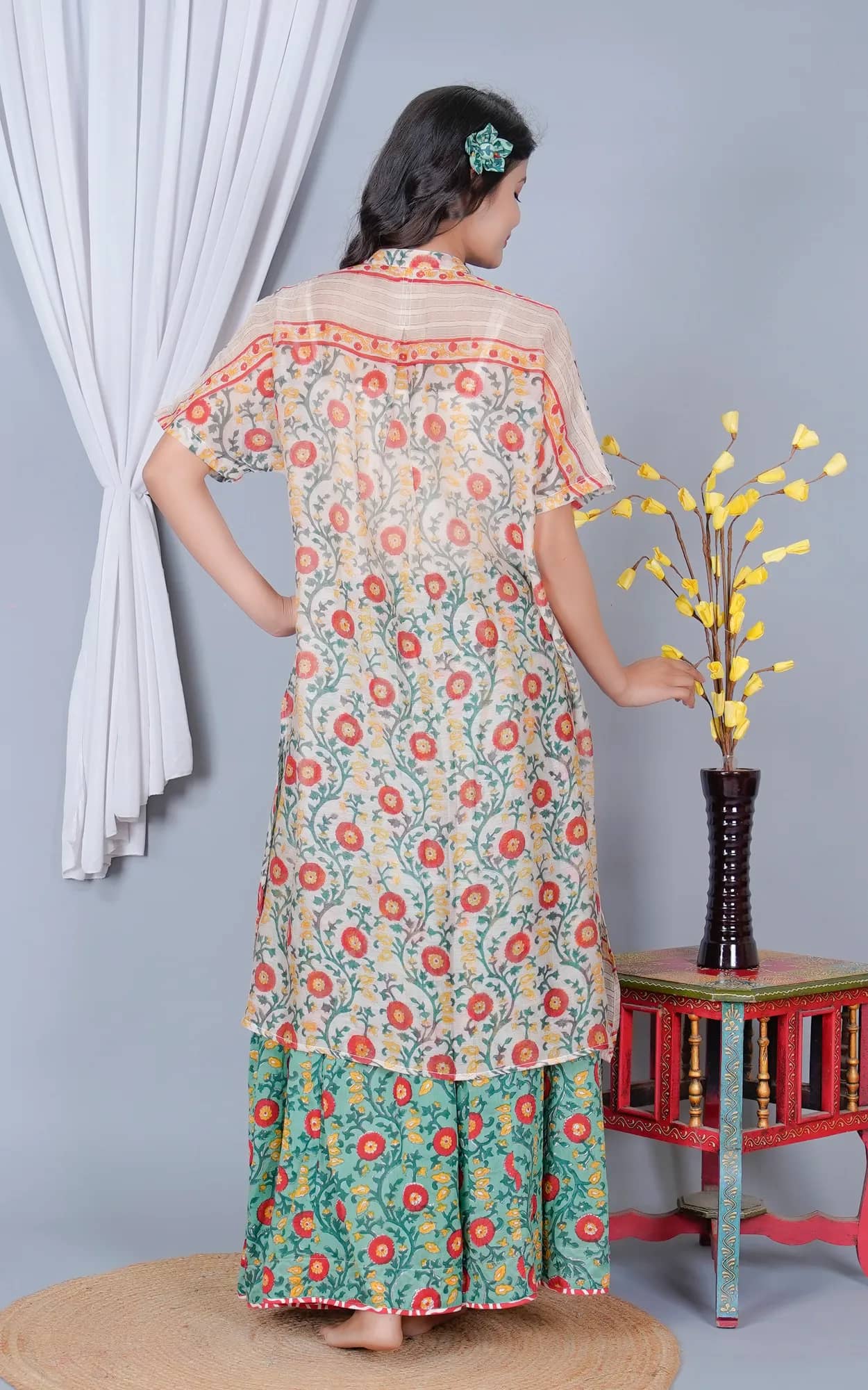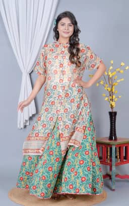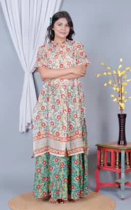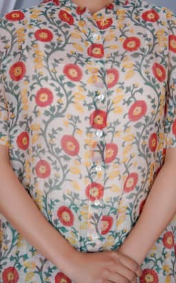 Care Instructions : Hand printed using wood blocks, hand wash separately in cold water with mild soap, do not bleach, hang to dry in shade or dryclean.