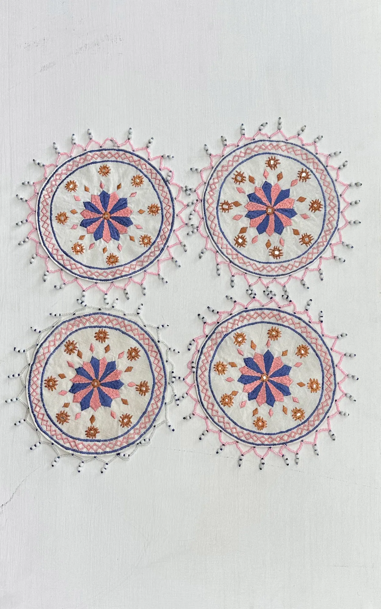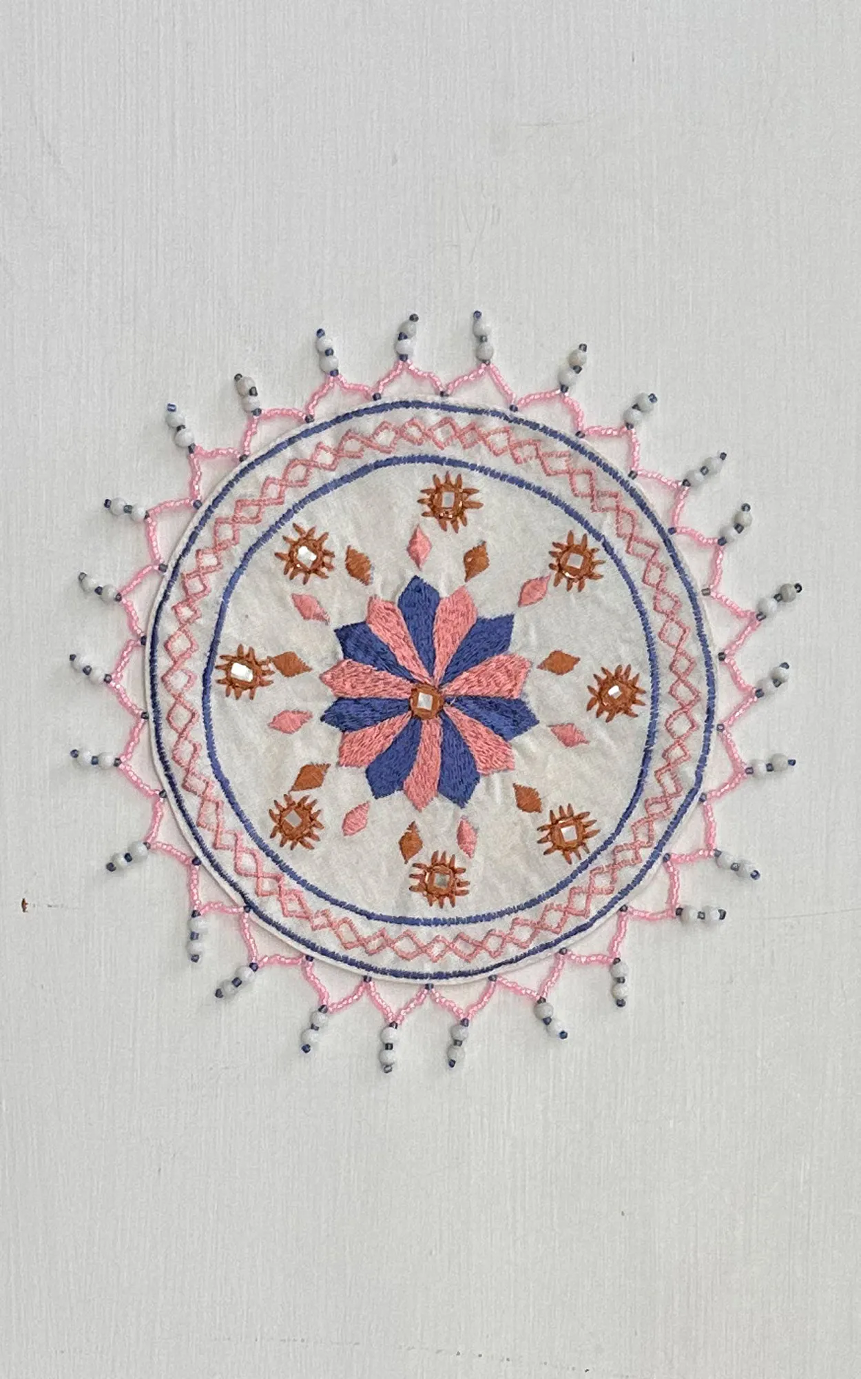 Machine Embroidered Beaded Jug Cover On Cotton Fabric