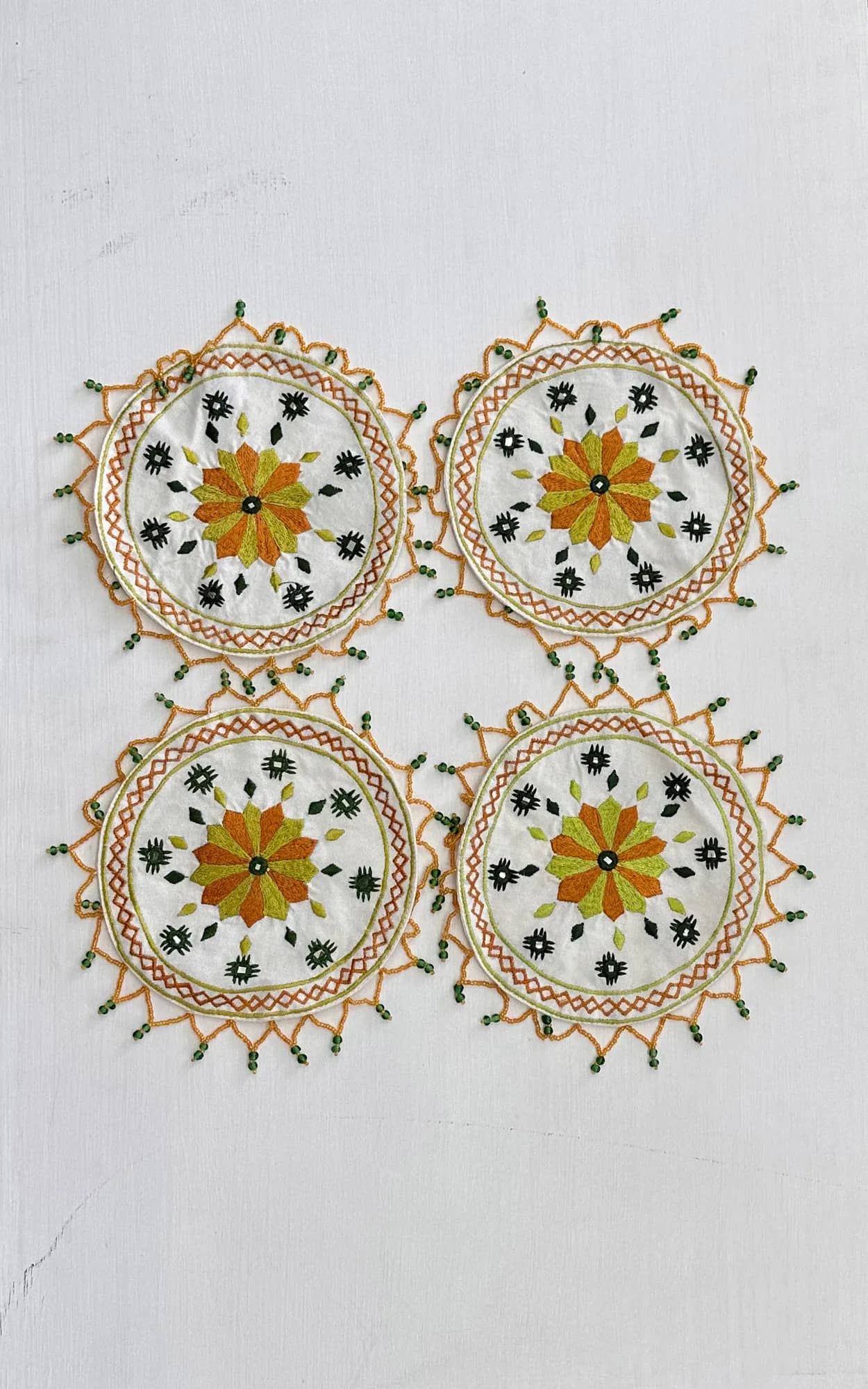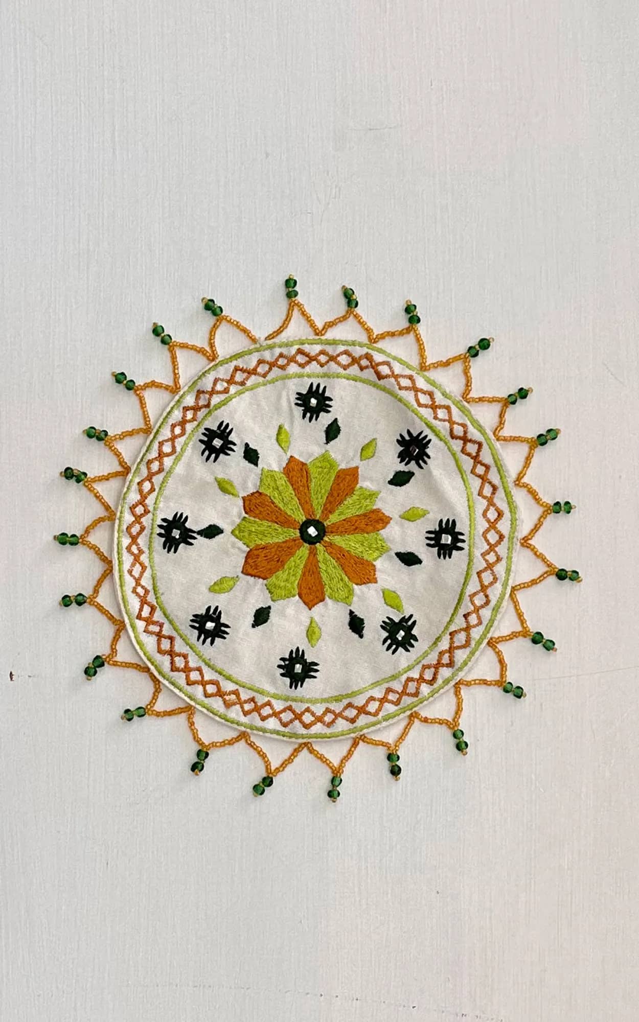 Machine Embroidered Beaded Jug Cover On Cotton Fabric