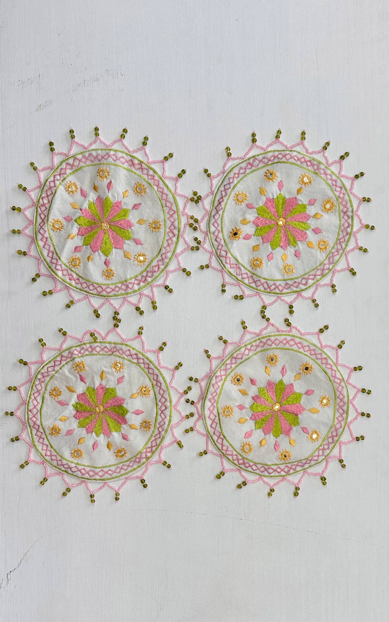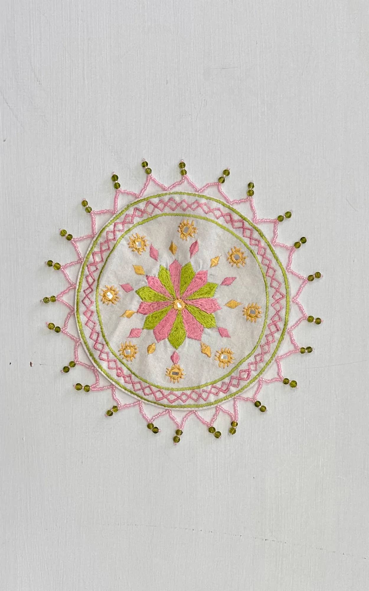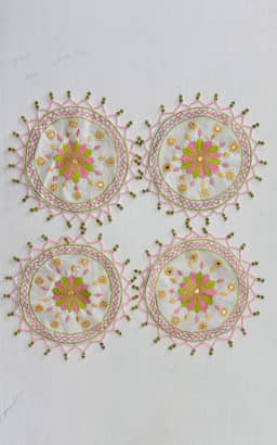 Machine Embroidered Beaded Jug Cover On Cotton Fabric