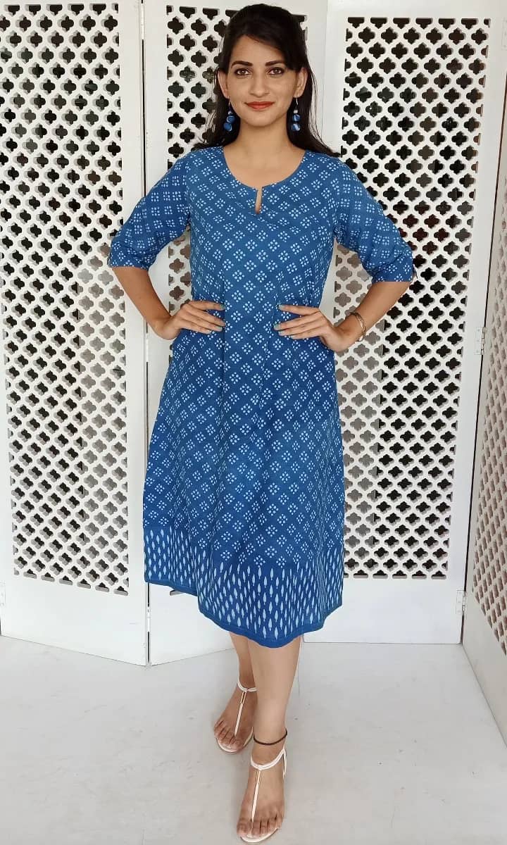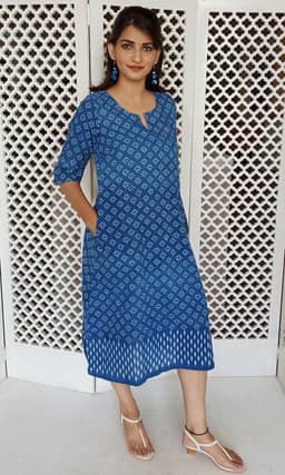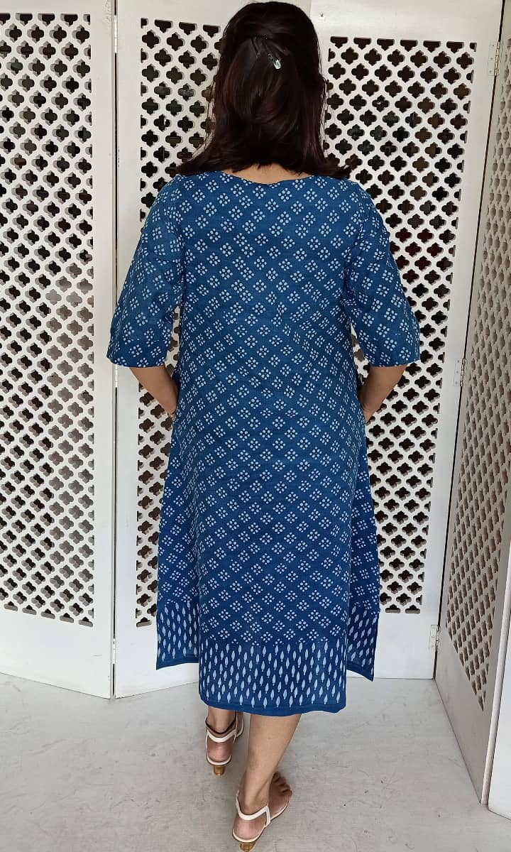 Hand block printed Indigo.