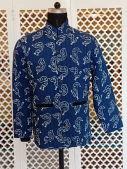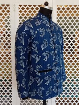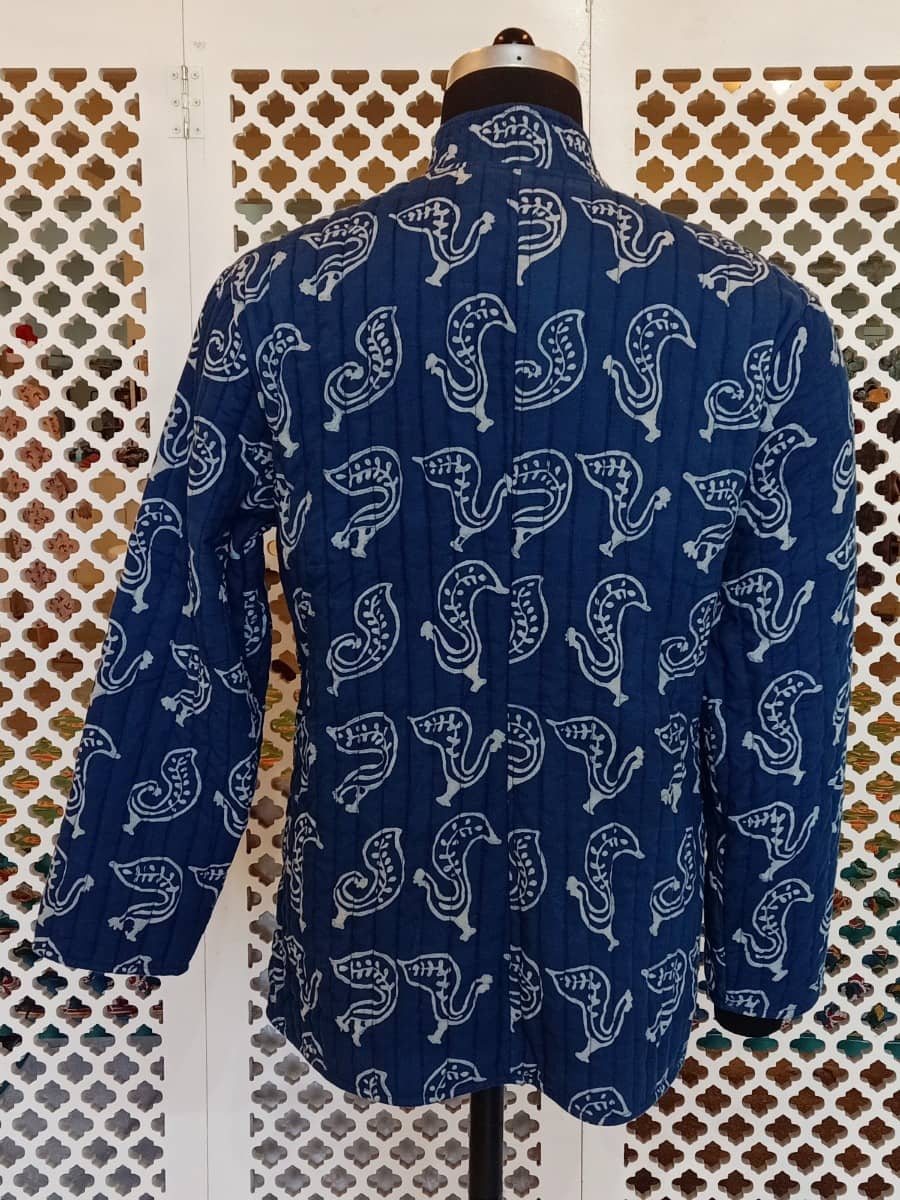 Hand block printed Natural Indigo.