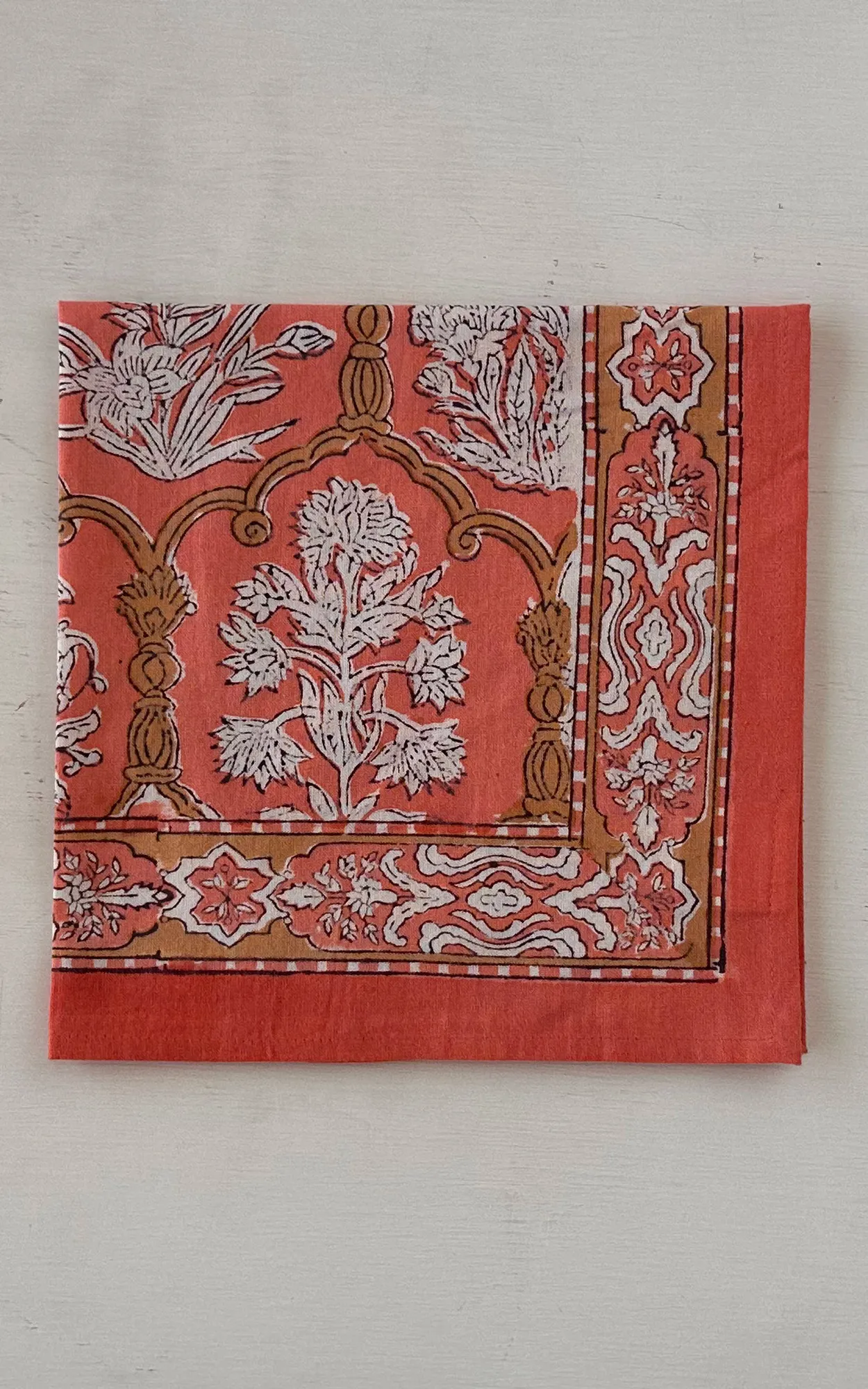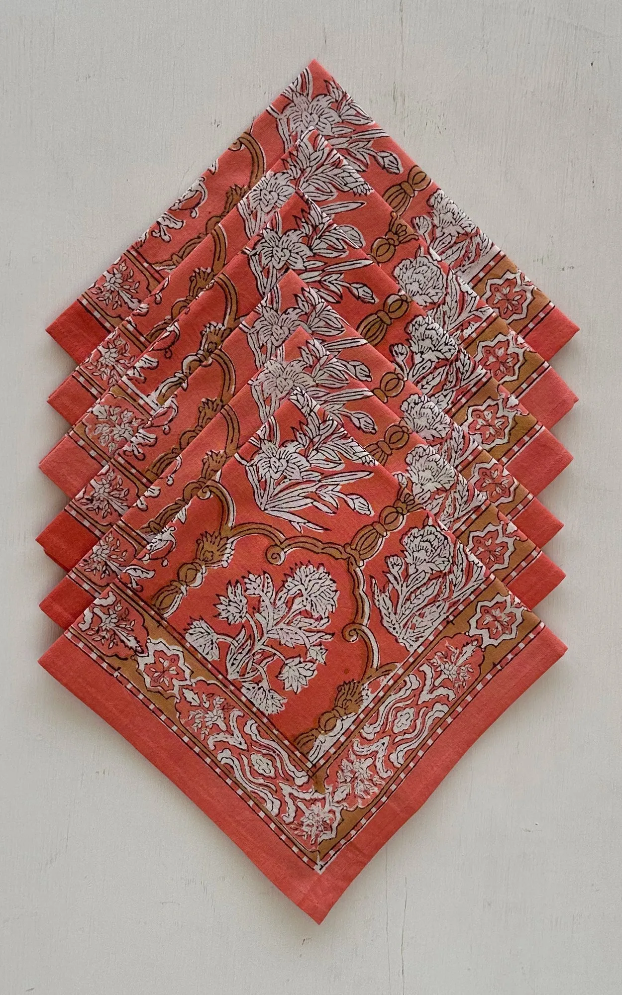 Care Instructions : Cotton is a natural durable fabric that can generally be machine washed with no ill effects. Hand printed using wood blocks, machine wash warm, normal cycle, no chlorine bleach, do not soak, spin dry.