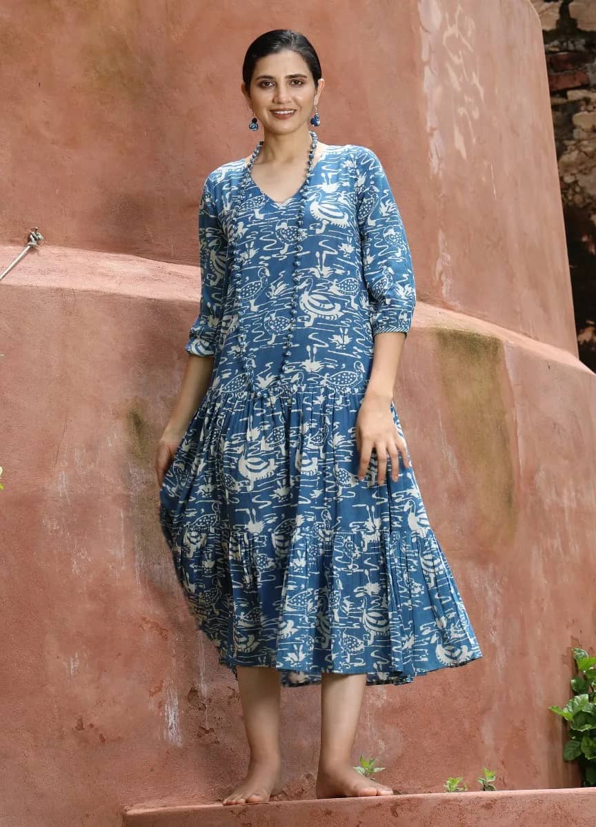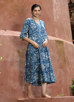 100% cotton hand block printed Natural Indigo.