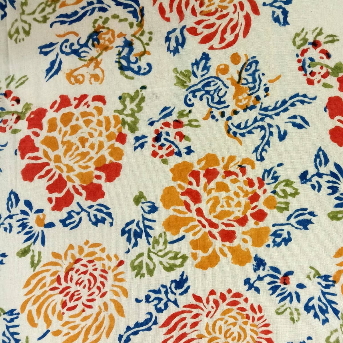 Care Instructions : Cotton is a natural durable fabric that can generally be machine washed with no ill effects.Hand printed using wood blocks, machine wash warm, normal cycle, no chlorine bleach, do not soak, spin dry.