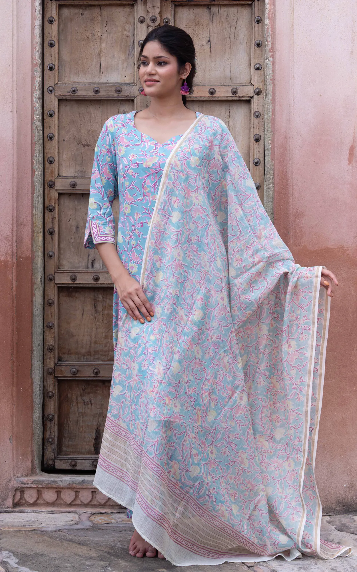 Care Instructions :  Hand printed using wood blocks, hand wash separately in cold water with mild soap, do not bleach, hang to dry in shade or dryclean