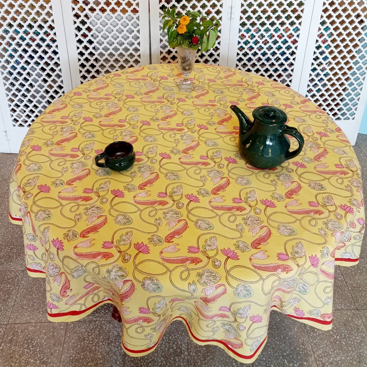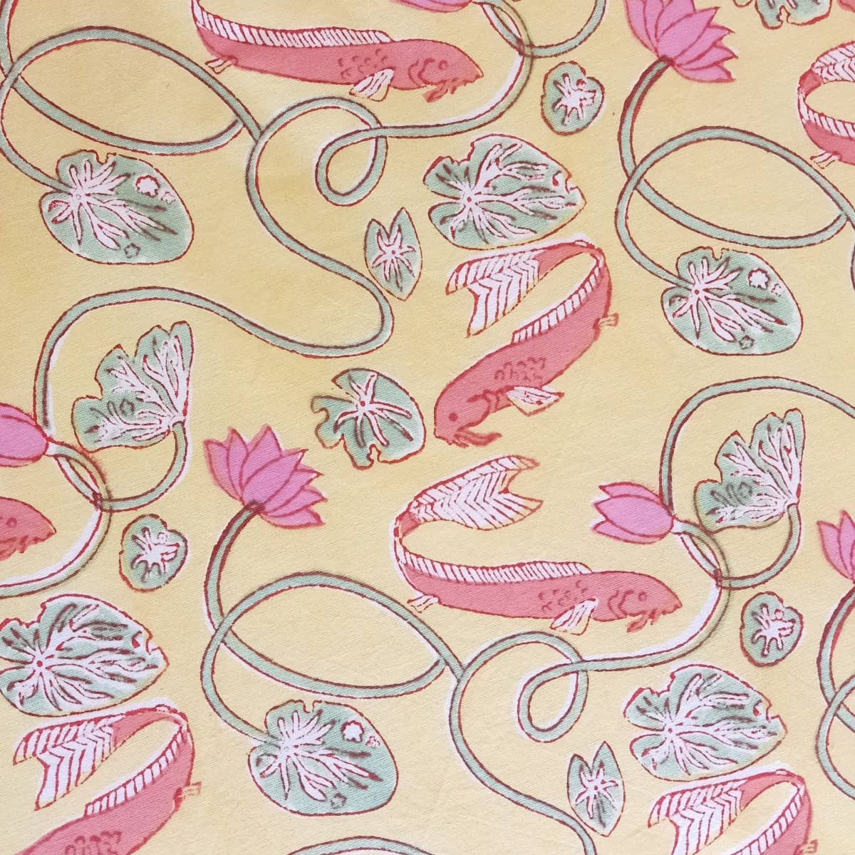 Care Instructions : Cotton is a natural durable fabric that can generally be machine washed with no ill effects.Hand printed using wood blocks, machine wash warm, normal cycle, no chlorine bleach, do not soak, spin dry.