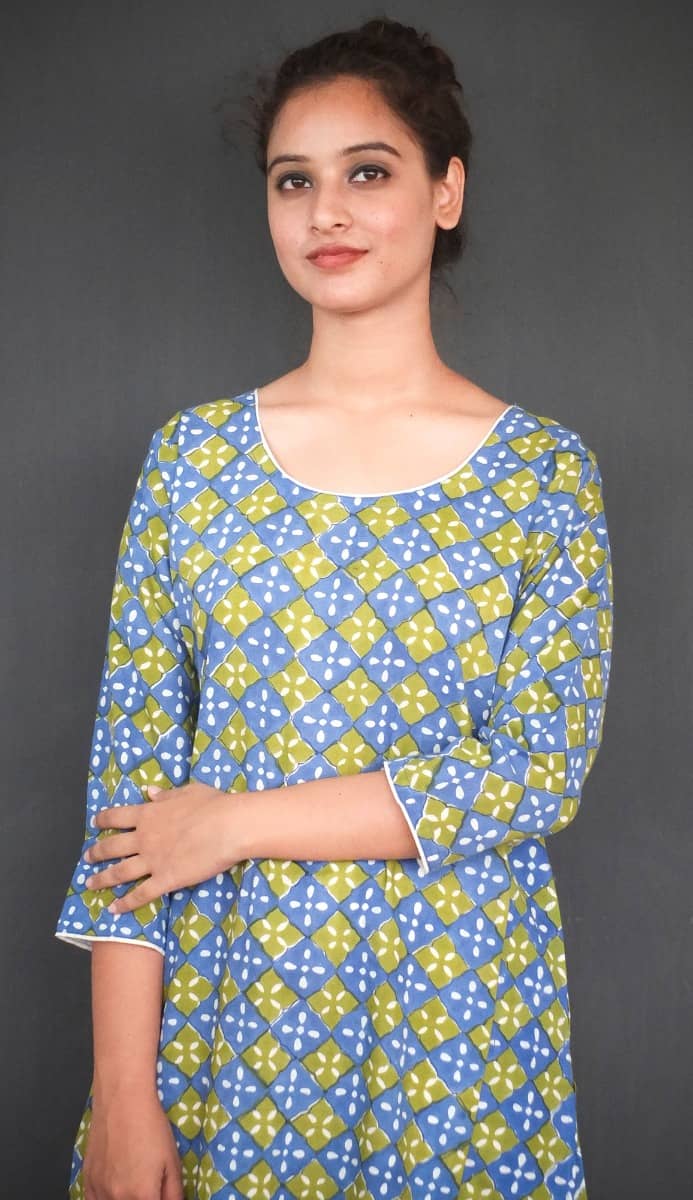 Care Instructions : Cotton is a natural durable fabric that can generally be machine washed with no ill effects. Hand printed using wood blocks, machine wash warm, normal cycle, use mild soap, avoid detergents, do not use bleach or fabric whitener, hang to dry in shade.