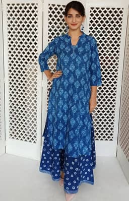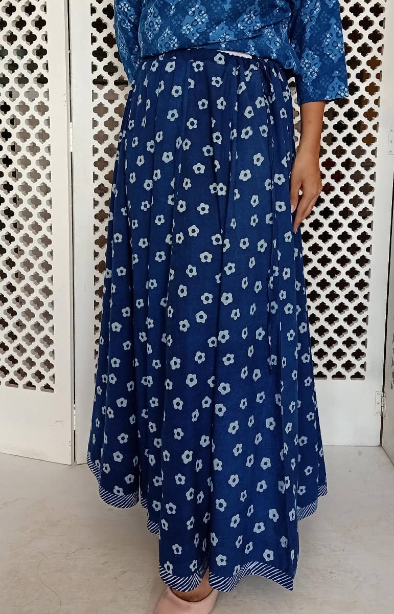 Hand block printed Indigo.
